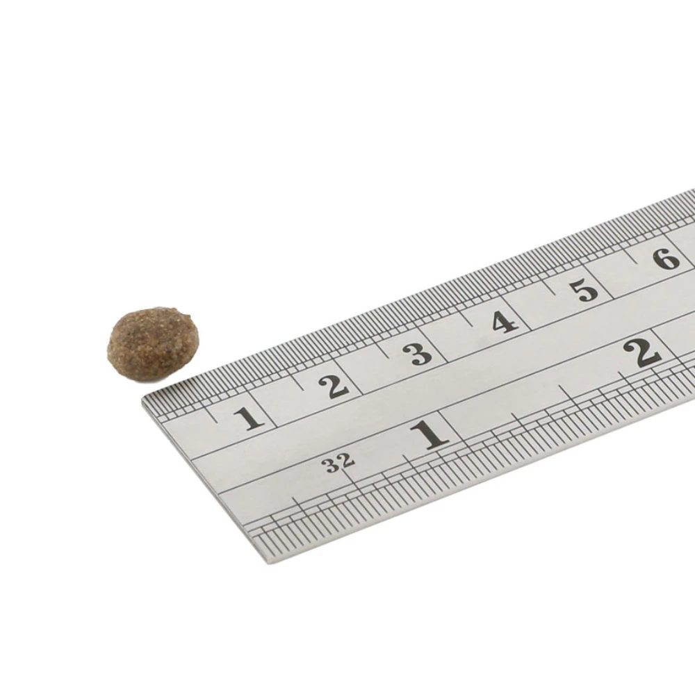 Ruw eiwit 26%, vetgehalte 12%, ruwe as 7,5%, ruwe vezels 2,5%, omega 3 vetten 1%.