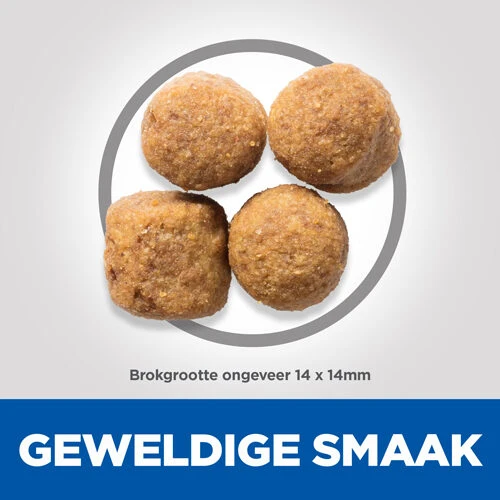 Hill’s Science Plan Adult Large Chicken is speciaal samengesteld om te ondersteunen bij een optimale ontwikkeling van gewrichten en spieren voor honden van grote rassen. Daarnaast draagt dit lekkere hondenvoer bij aan gezond kraakbeen. Het hondenvoer van Hill’s zit boordevol Vitamine E en Omega-6 vetzuren, die bijdragen een gezonde huid en glanzende vacht van uw hond!