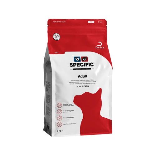 Adult FXD van Specific is een evenwichtige en gezonde voeding voor katten op basis van vis en rijst. Deze voeding is geschikt voor katten tussen de 1 – 8 jaar oud. Dit droogvoer bevat goed verteerbare ingrediรซnten om de kat fit te houden. Dit uitgebalanceerde droogvoer voor katten bevat de juiste hoeveelheid energie, zodat de kat op het ideale lichaamsgewicht kan blijven. Ook voor katten die zijn afgevallen biedt de Adult FXD van Specific gewichtscontrole na een periode van gewichtsverlies.
